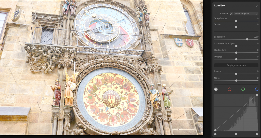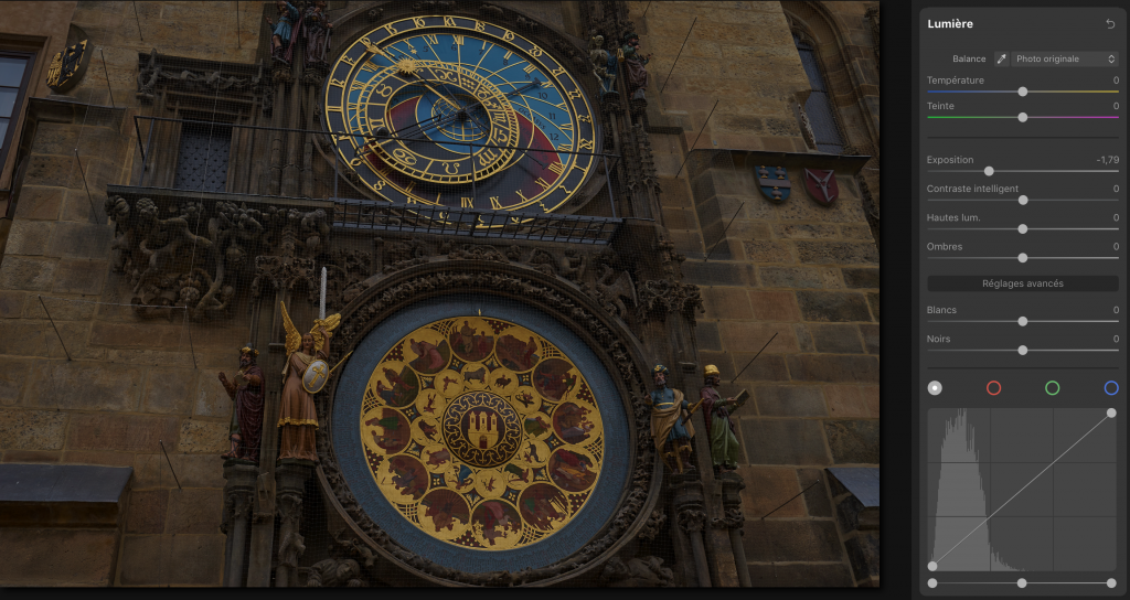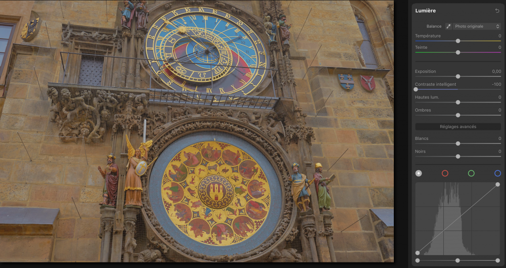 Voici une photo de l’horloge astronomique de Prague prise par temps couvert. Cette photo a été prise en RAW et contient donc plus d’informations qu’un format JPEG.